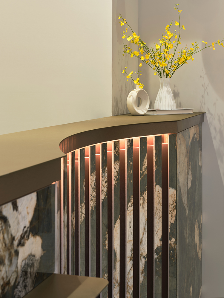 牆磚:條條-05翡翠 吧台:鎏金雕刻白